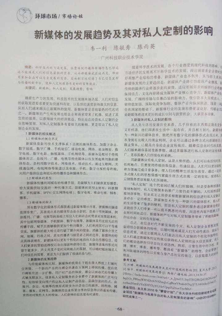 3.【发表论文】新媒体的发展趋势及其对私人定制的影响