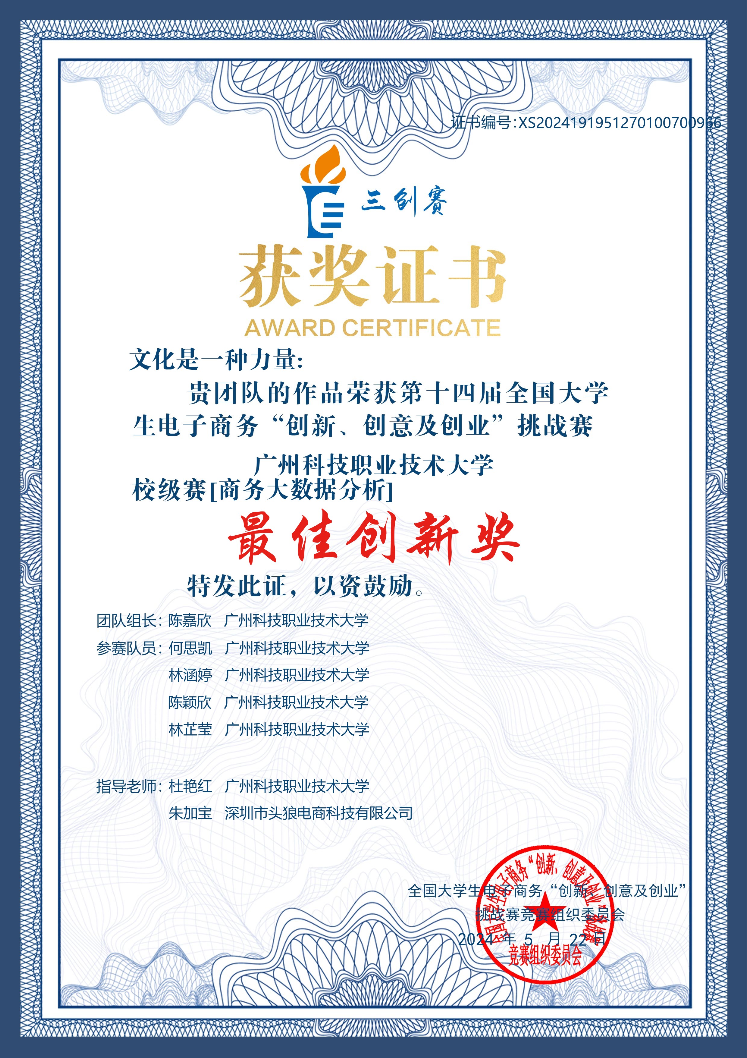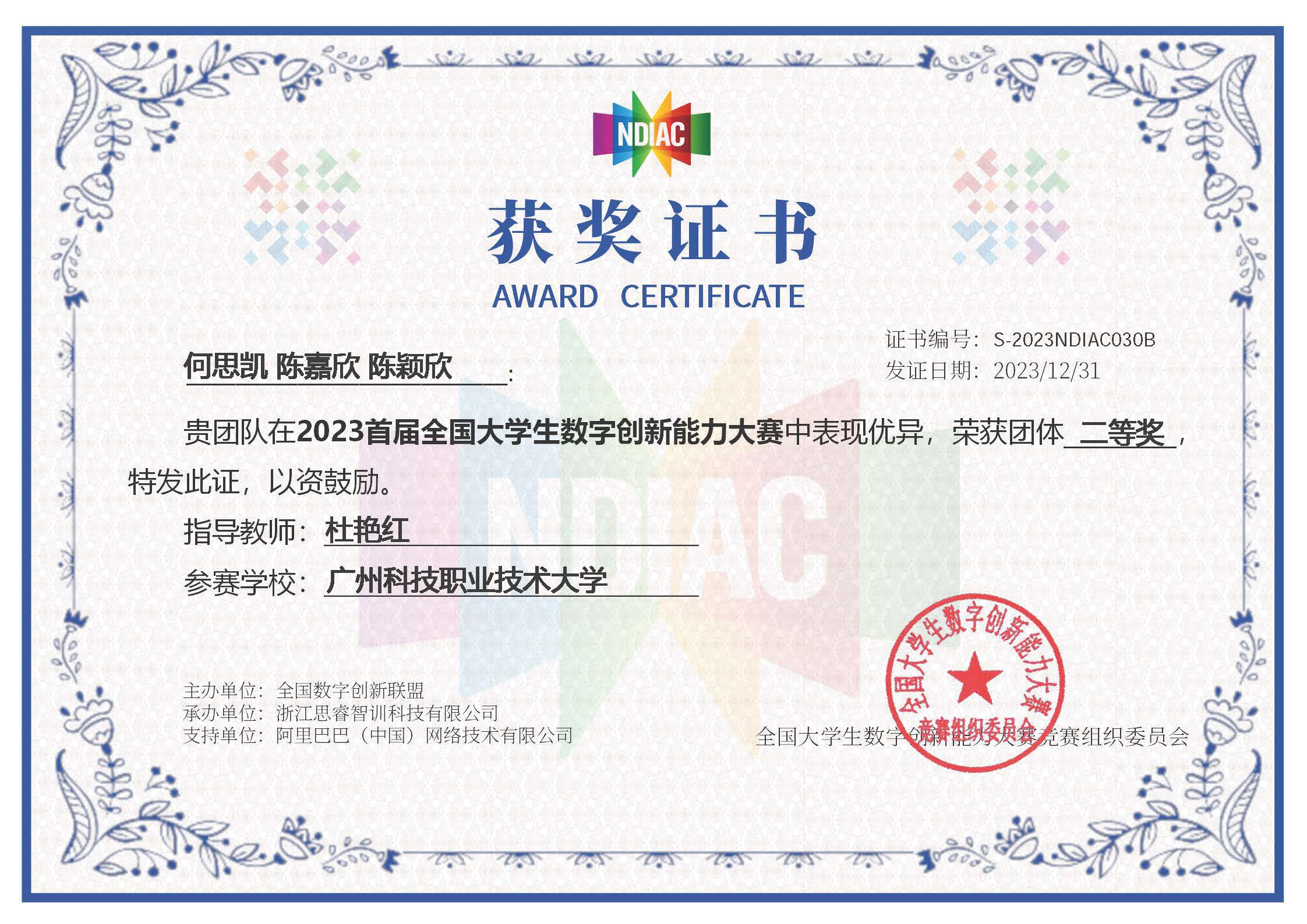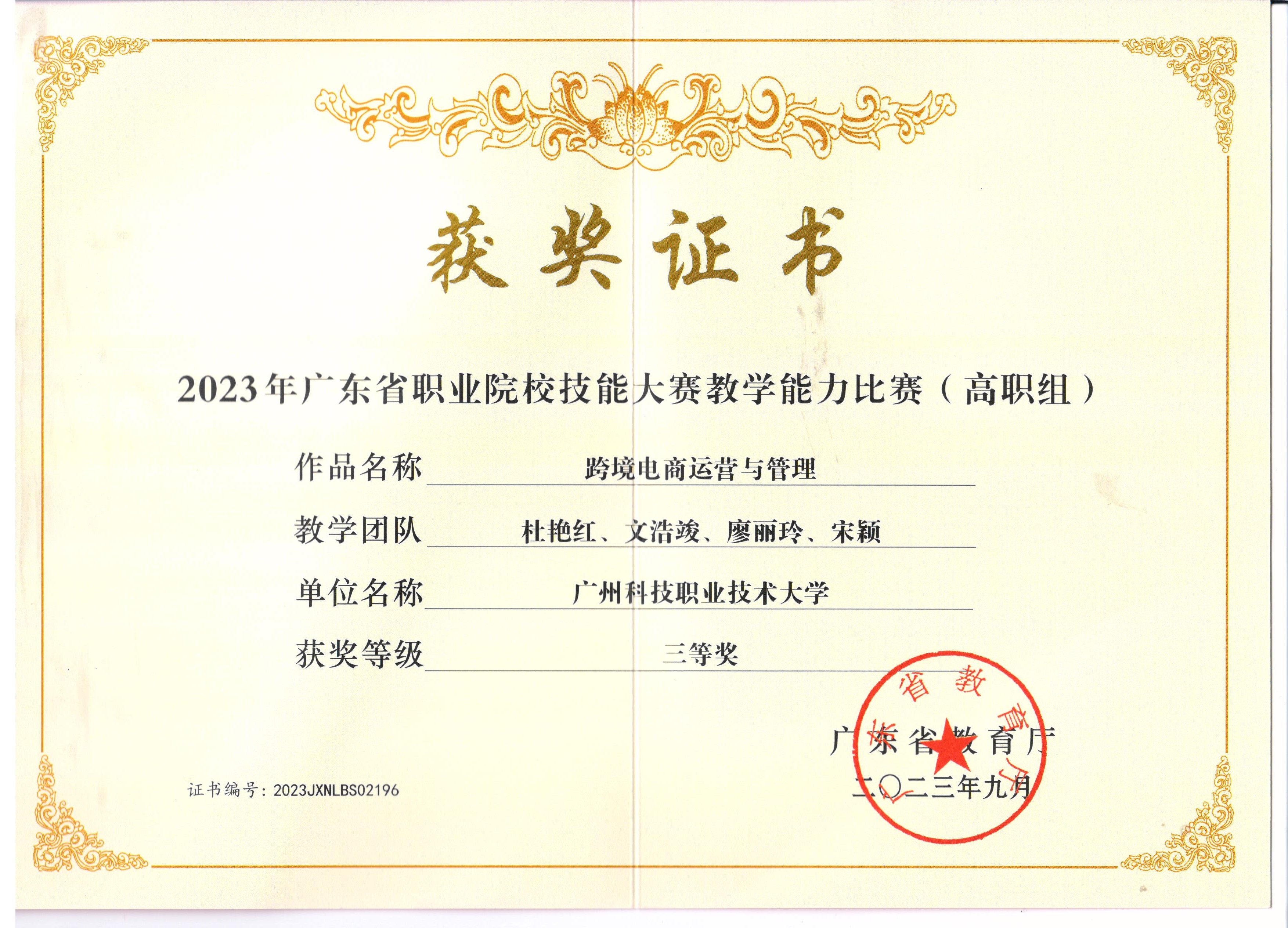 (1)竞赛获奖成果丰硕,学生在跨境电商及相关领域竞赛中屡获高阶奖项,先后斩获全国大学生跨境电商创新创业大赛(国家级一等奖)、全国大学生数字创新能力大赛(国家级一等奖)、全国大学生英语翻译大赛(国家级一等奖)、广东省职业院校技能大赛英语口语大赛(省赛一等奖)、“外教社Ÿ词达人杯”全国大学生英语词汇能力大赛(省赛二等奖)、一带一路暨金砖国家技能发展与技术创新大赛(国赛二等奖)、全球. . .