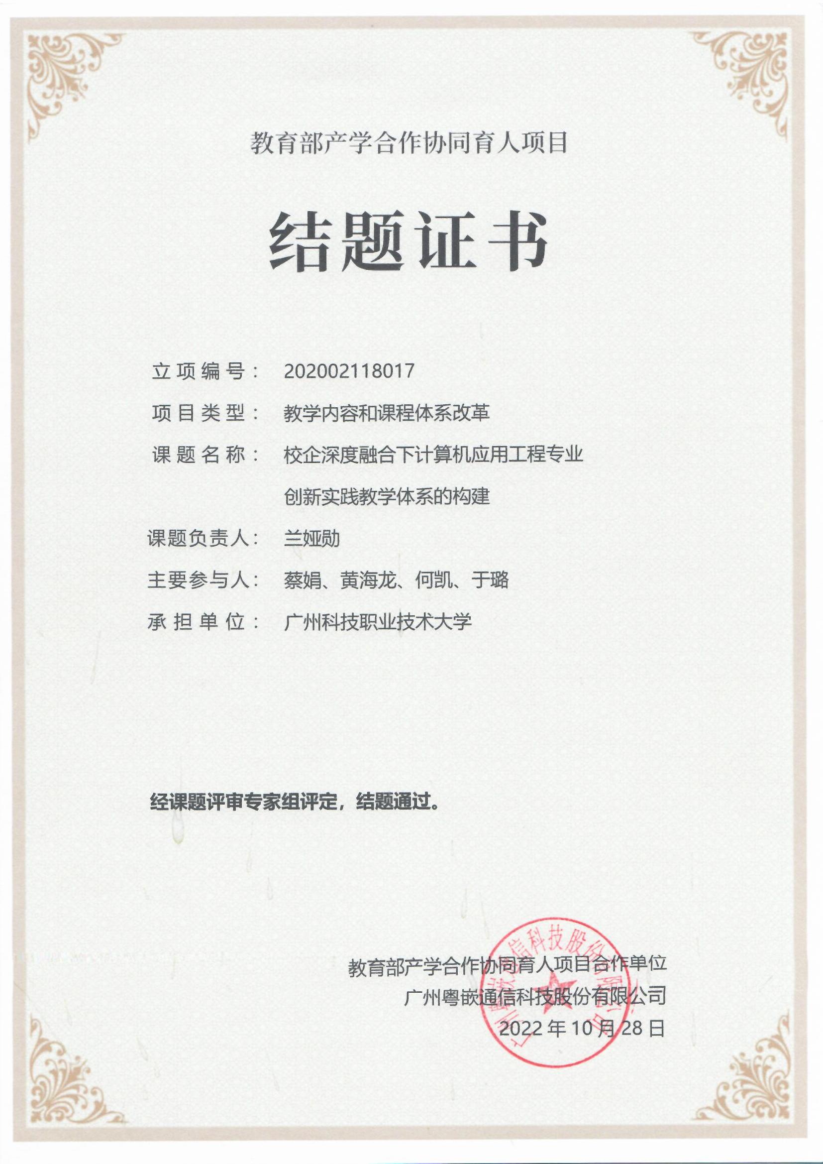 项目组高质量完成了全部建设任务。课程构建了“点线面体”四维思政教学设计模式和基于OBE理念的实施路径,顶层设计科学、系统。项目产出了一整套高质量的教学资源,包括修订后的课程标准、授课计划、实训指导书等支撑材料,并制作了8个思政教学案例、30个思政微课和7个仿真动画,资源完备、形态丰富,为课程的高质量实施提供了有力保障。