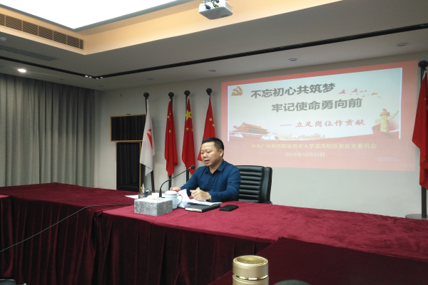 最后,滨海校区管理办公室副主任吴戴传达《中共广东省委教育工委关于进一步加强高校基层党支部建设的通知》,并组织大家学习了茂名市委教育工委关于“不忘初心、牢记使命”主题教育的指示精神,重点指出了滨海校区目前急需加强思政部党支部建设,要做好党建品牌的引领示范作用,继续选优配强教工党支部书记。滨海校区全部工作既要遵照群众路线,又要独立自主地做好校区管理工作,致力于职业本科教育的开创性工作。