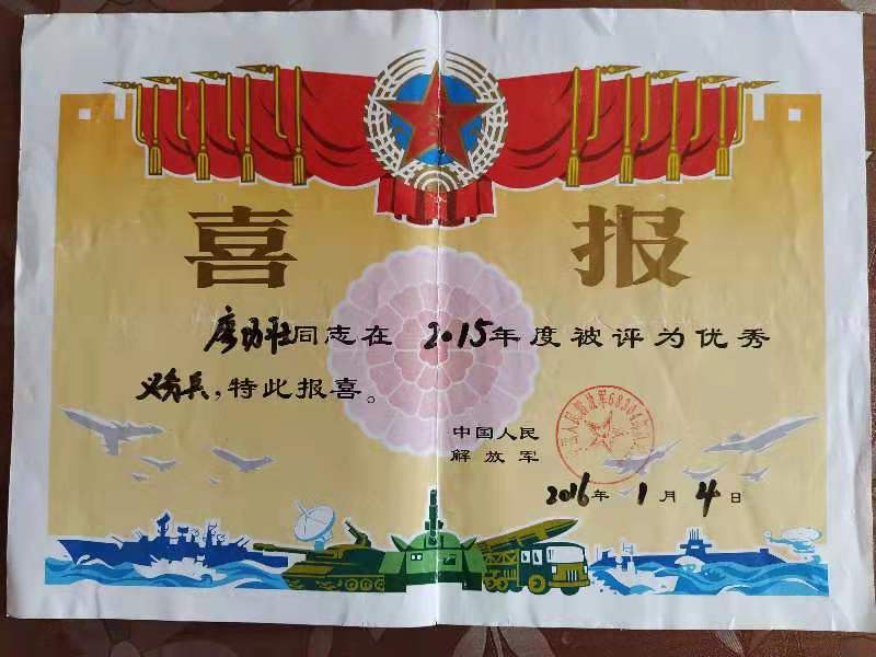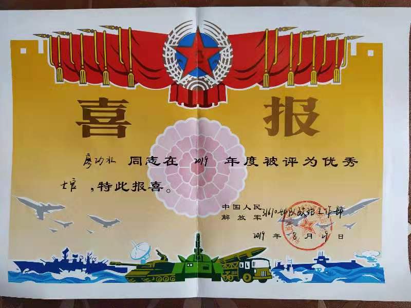 图二、廖功壮在部队获得的荣誉和证书