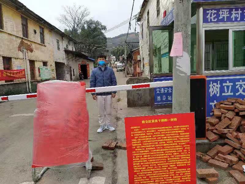 图一、2月7日,廖功壮在村口岗亭站岗