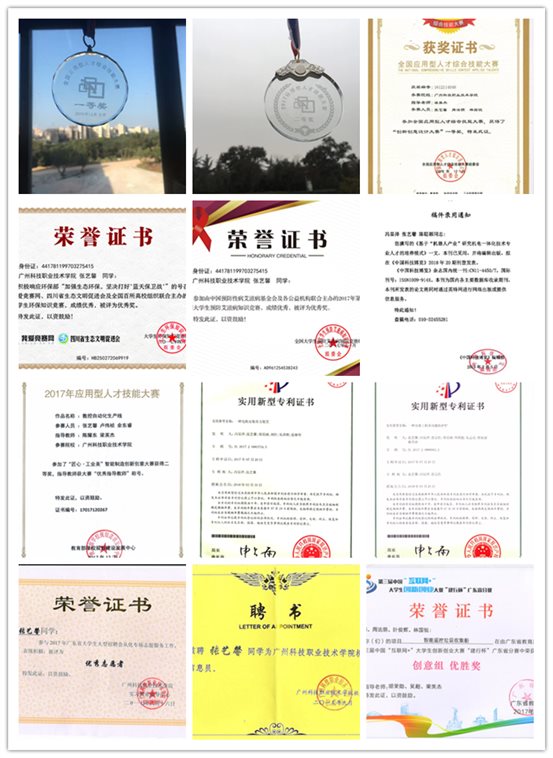 他申报了广东省“攀登计划”项目成功立项;参加第三届“挑战杯——彩虹人生”广东职业院校创新创效创业大赛获得“省级二等奖”;2016年,参加全国应用型人才技能大赛获得“国家级一等奖”。