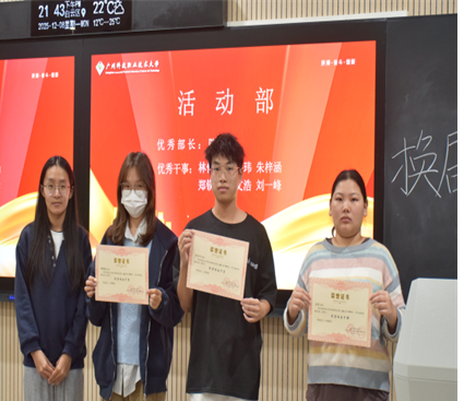 随后进入表彰环节,协会为2024-2025学年表现突出的成员颁发荣誉证书。宣传部徐思棋、活动部陈莹、外联部程淑卿获评“优秀部长”,蒲泳恩、林佚洲、陶继劲等二十余位同学荣获“优秀成员”称号。这份荣誉既是对过往耕耘的肯定,也为新征程注入了接续奋进的力量。