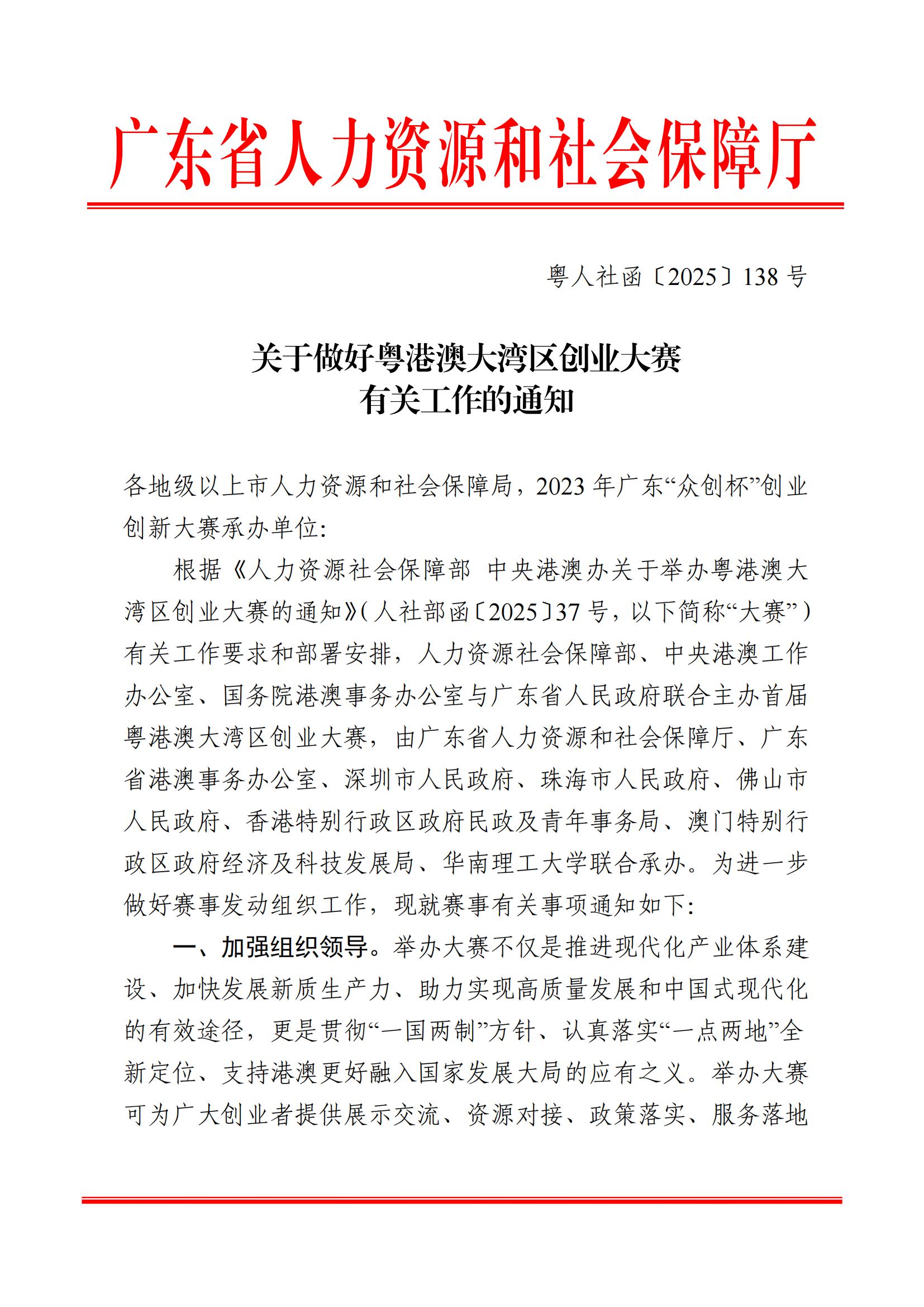关于做好粤港澳大湾区创业大赛有关工作的通知