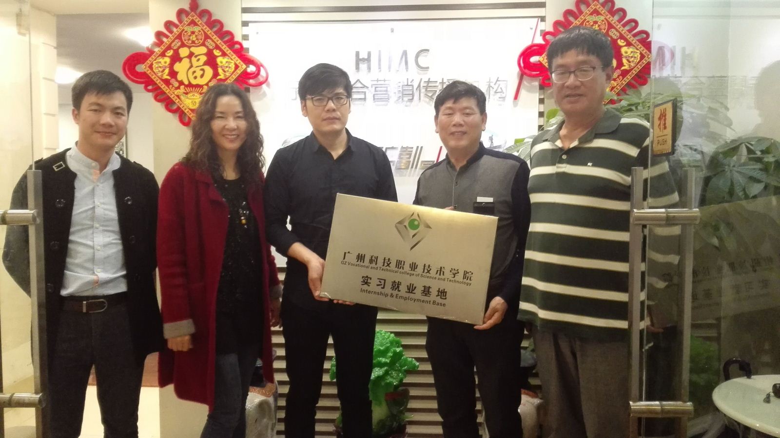 3月9日,我校就业处潘世华处长,韦一文老师一行三人来到广州行思公司(由广州市平行广告、平速广告,行策广告,行思广告组织成),看望我校在该单位实习的实习生,并对我校实习生集中进行就业指导。课程结束后,与公司领导就校企合作的具体事宜进行了深入交流,达成了一致意见,当场签订了校企合作协议并举行了授牌仪式。