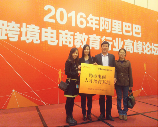 2016年3月23日,阿里巴巴举办的“2016年跨境电商教育行业高峰论坛”在广州南丰朗豪酒店举行。在实习就业中心潘世华处长的带领下,外语外贸学院杜艳红、何冬兰、廖丽玲老师出席了“广州科技职业技术学院-阿里巴巴跨境电商人才培育基地”授牌仪式。这标志着我校正式成为阿里巴巴跨境电商人才培育合作院校。