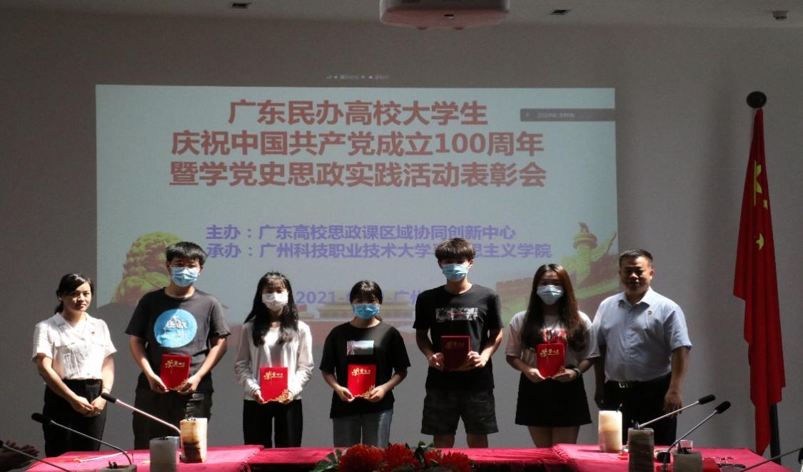 (广科大新闻网讯)6月29日下午,由广东省高校思政区域协同创新中心主办、广州科技职业技术大学马克思主义学院承办的“广东民办高校大学生庆祝中国共产党成立100周年思政实践活动表彰会”在广州科技职业技术大学图书馆五楼会议室隆重举行。