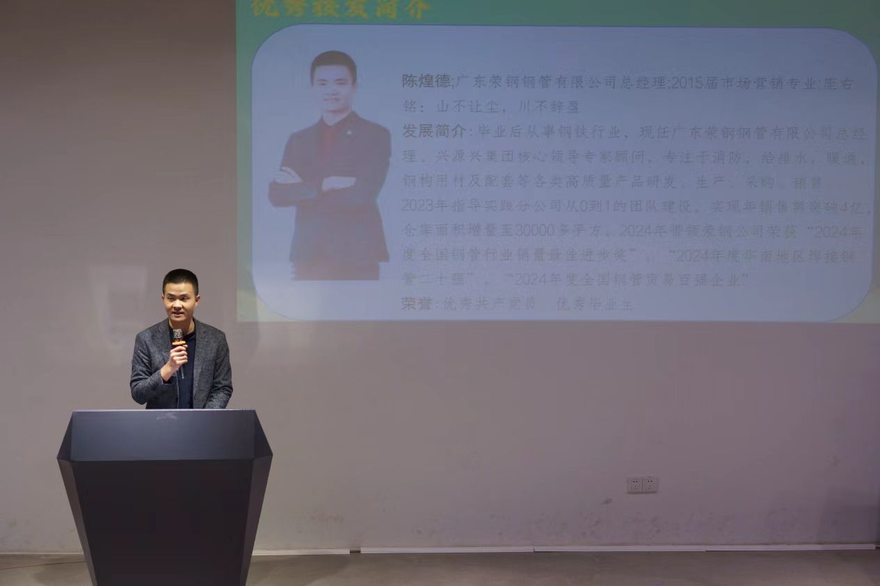 陈煌德,以市场营销专业为起点,深耕钢铁制造领域,完成了从学生到企业管理者的人生跨越。作为广东荥钢钢管有限公司总经理,他始终心系母校,积极推动校企合作与人才培养,用专业与实干铸就职业之路。