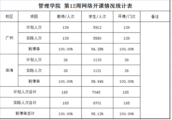 管理学院第12周上课教师教学情况反馈如下: