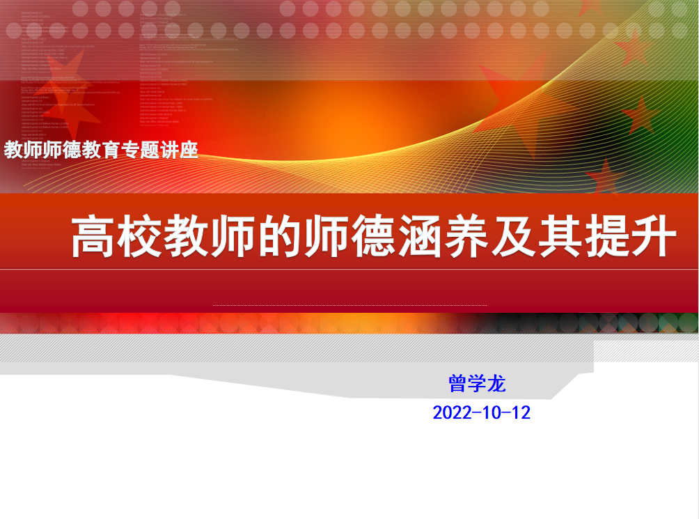 为了加强教师队伍建设和老师们自身的行为修养,提高教师素质,树立良好教师形象,2022年10月27日,物流教研室全体老师通过线上和线下的方式组织召开以“学习学校规章制度与曾学龙教授关于高校教师的师德涵养及其提升的讲座”专题的心得分享会。