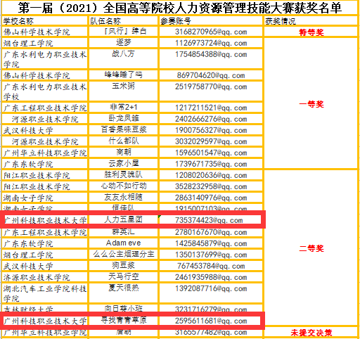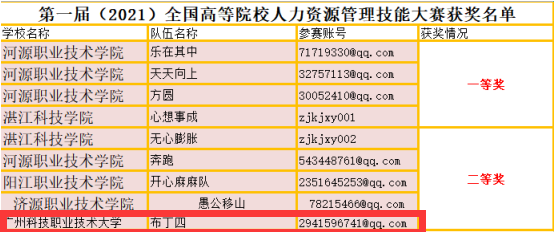 图1:学生团队获奖名单截图