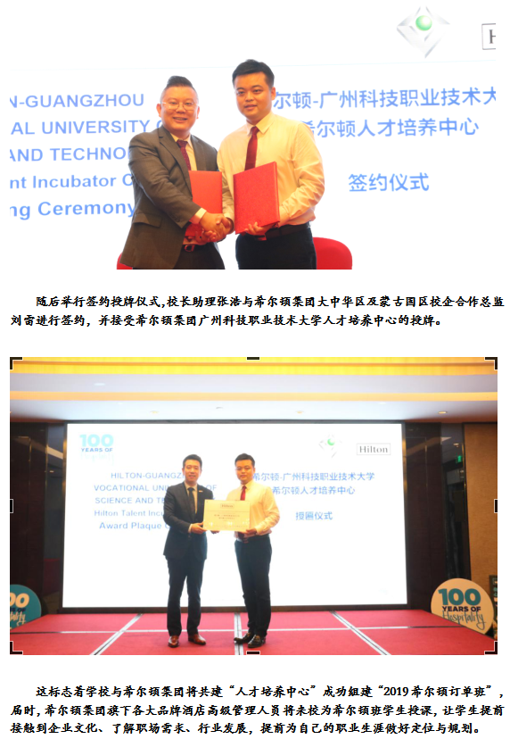 我校与希尔顿集团举行人才培养中心签约仪式