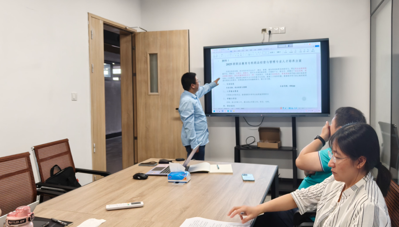 图为:药品经营与管理专业负责人肖亚东副教授说方案