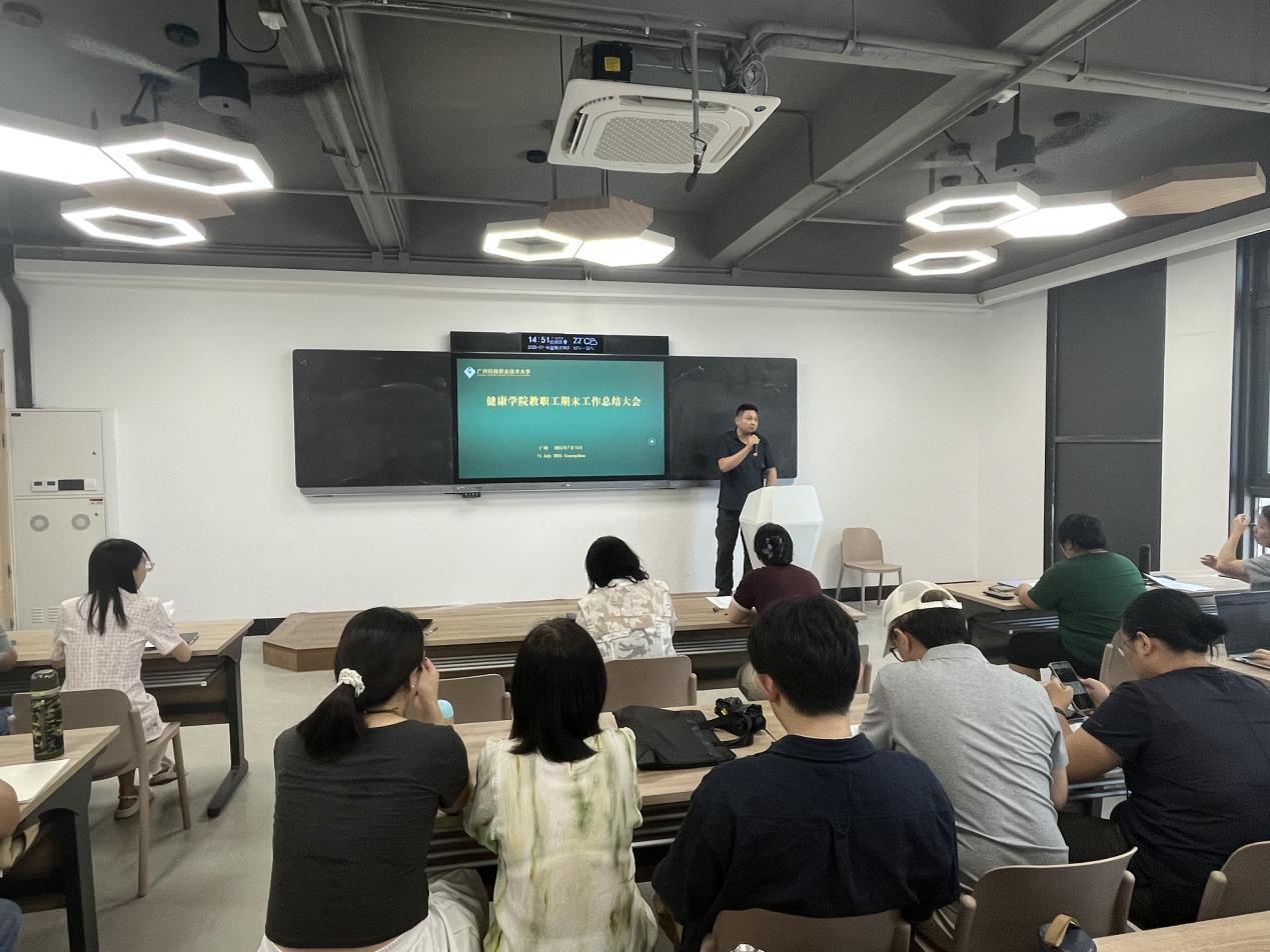 7月16日下午,广州科技职业技术大学健康学院2024-2025学年第二学期期末工作总结大会在9栋A座505教室圆满召开。学院院长刘琼玲、副院长操日亮、副院长赵昱、各教研室主任及全体教职工齐聚一堂,全面回顾学期工作,共绘未来发展蓝图。