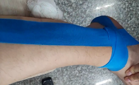 随后学生进行分组实践环节,同学们两两一组,互相充当“患者”与“队医”。我院康复教研室的管婷老师和刘欢老师也一同穿梭在课桌间进行指导,密切关注每一组同学的操作,发现有同学绷带缠绕过紧时,老师们会立刻提醒:“力度要适中,既要起到固定作用,又不能影响血液循环。”遇到拿捏不准肌贴剪裁角度的同学,老师们手把手辅助调整。在老师们耐心的指导下,同学们从最初的生疏逐渐变得熟练,现场学习氛围热烈浓厚。