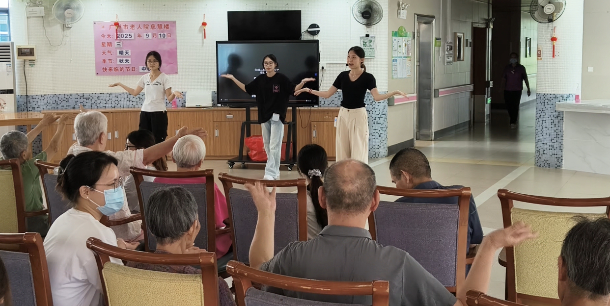 9月10日,我校健康学院组织40余名学生志愿者前往广州市老人院慈慧区,开展以“心手相连”为主题的敬老爱老志愿活动。主要通过陪伴交流、文艺表演、教导健康手指操等形式,为老人们送去温暖与关怀,践行社会主义核心价值观,表现出大学生作为青年一代的社会担当与责任。