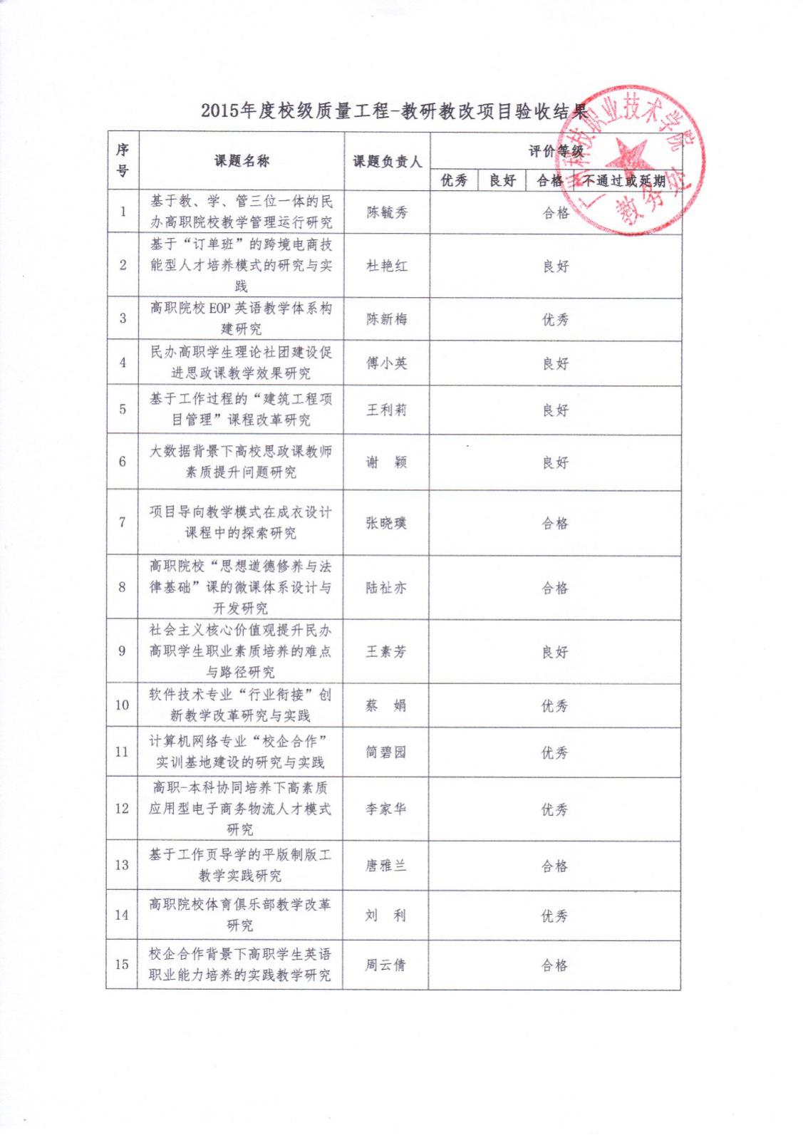 软件技术专业“行业衔接”创新教学改革研究与实践的结题通知