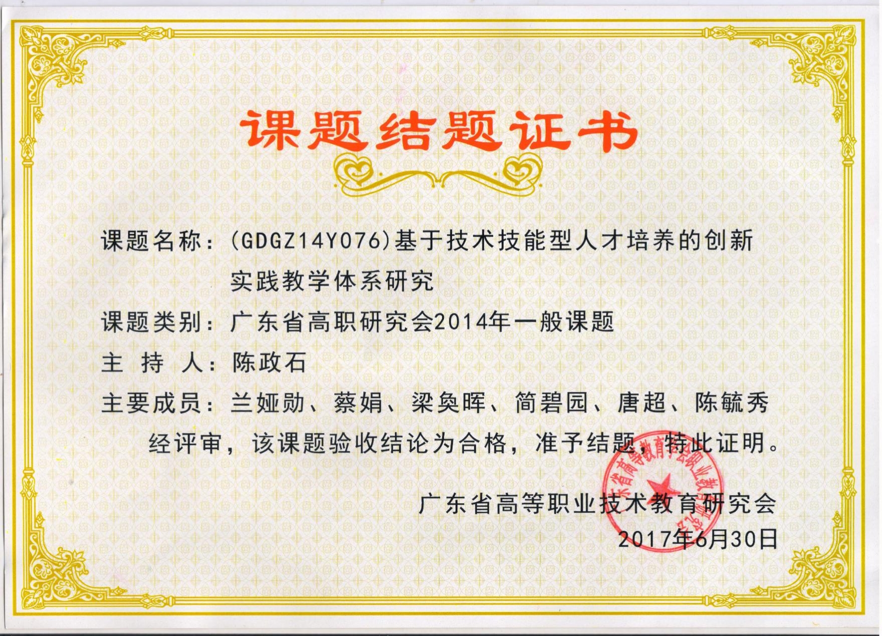 基于技术技能型人才培养的创新实践教学体系研究项目的结题通知