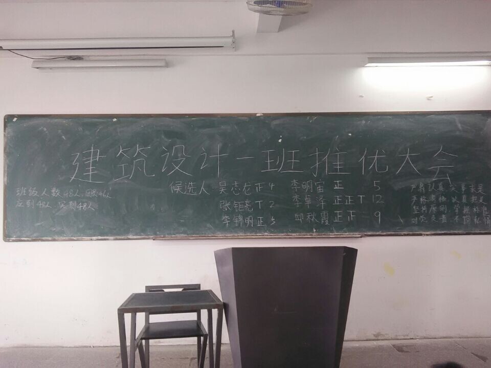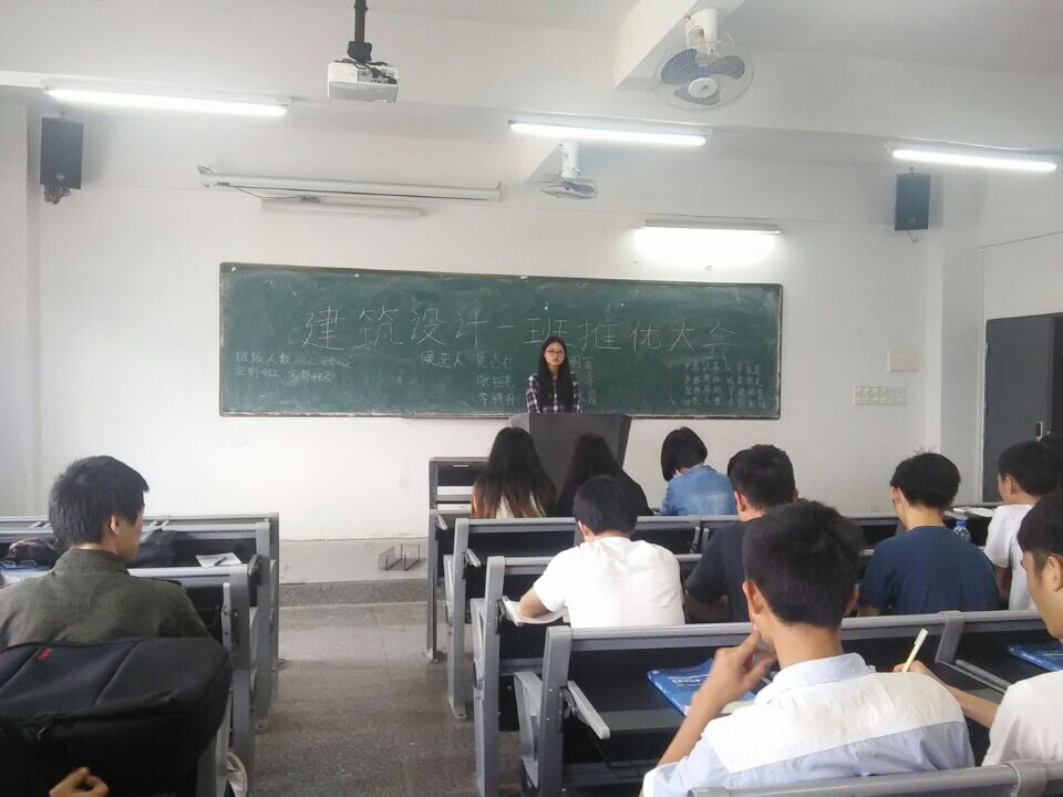 上午10点,2014级建筑设计1班在2211课室召开了广科院建筑工程系2014——2015年下学期“推优评议”大会。本次大会由设计一班团支书主持, 14级建筑设计1班全体学生、辅导员宋晓娟、辅导员助理谢小凤、党小组成员陈春丽以及团总支组织部干部等出席会议。