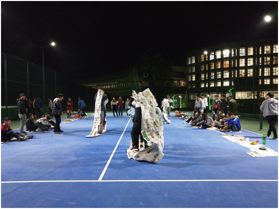 1218日晚上7:00,我院团总支在网球场举行了趣味素质拓展活动。