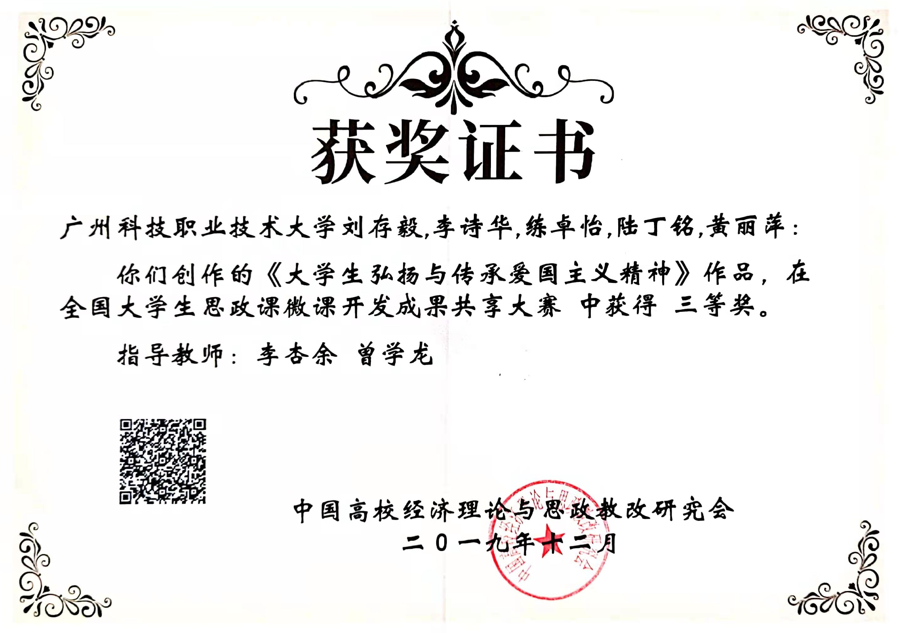 上一篇: 李杏余指导学生获得“全国大学生思政课微课开发成果共享大赛”三等奖(1)