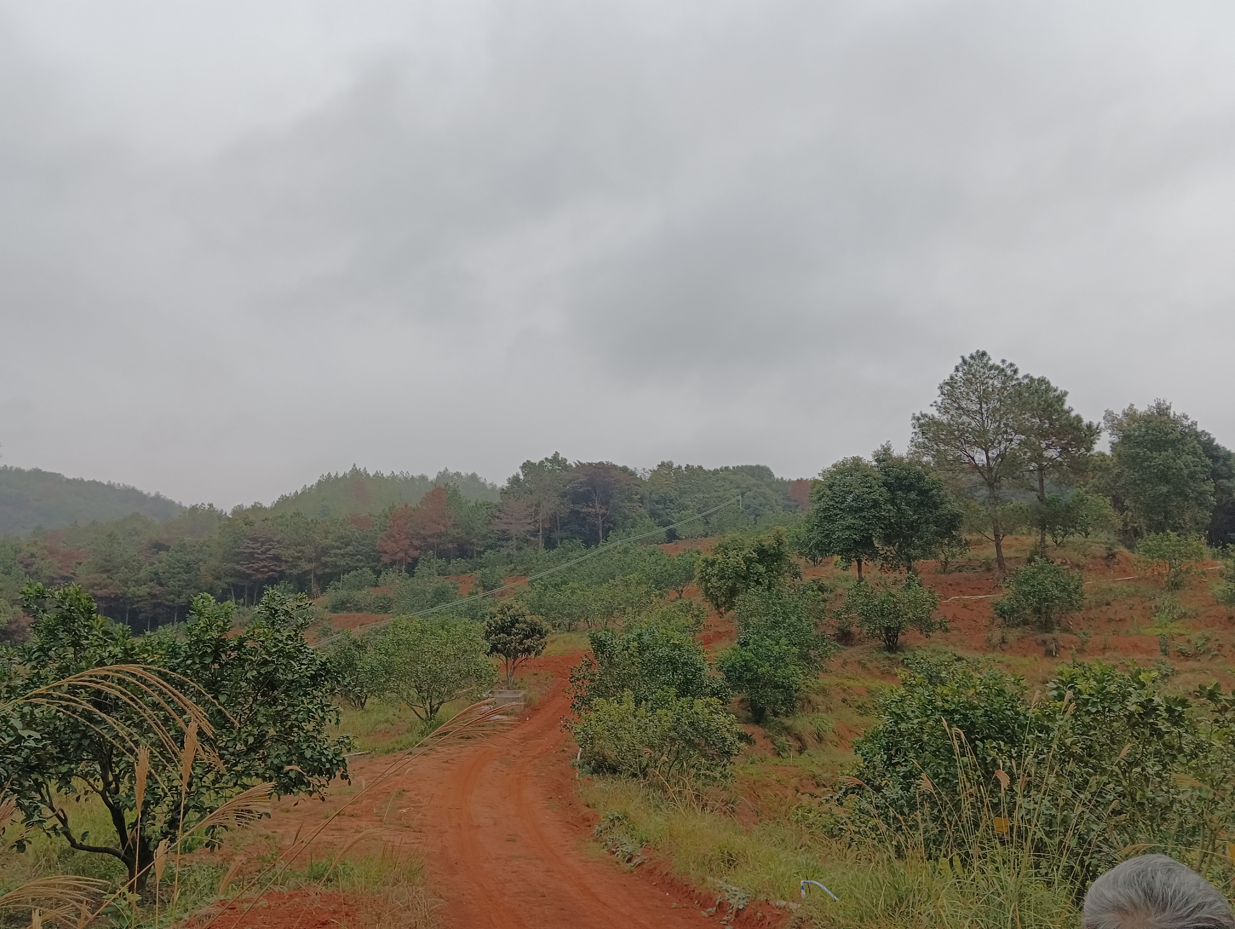 学校现有的山地种植了大量的柚子树,独特的土壤性质,给果子提供了充足的养分。加上当天气候适宜中草药种植,所以这次调研很有意义。我们首先和当地的钟叔取得联系,然后他带领我们围着山头进行查看,对每一个角落的情况进行详细的交流。
