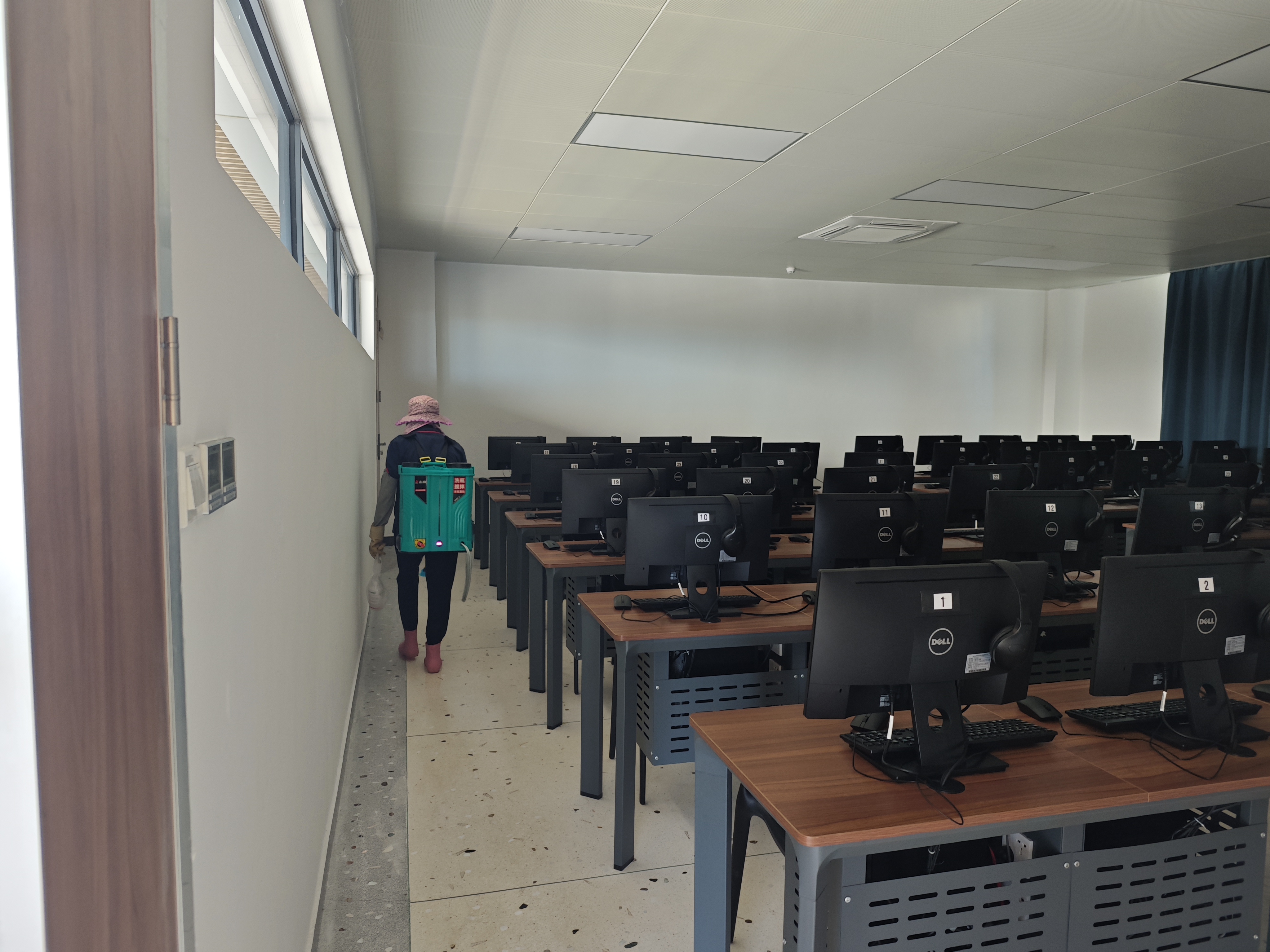 实训中心提醒全体师生员工,尽管已完成集中消杀,但仍需提高自我防护意识,及时清理室内外积水,避免蚊虫孳生,共同维护校园环境卫生,携手筑牢疫情防控的坚固防线。