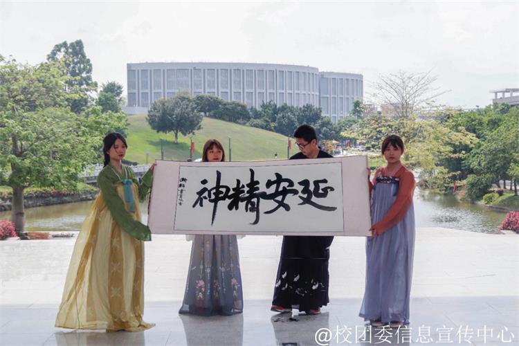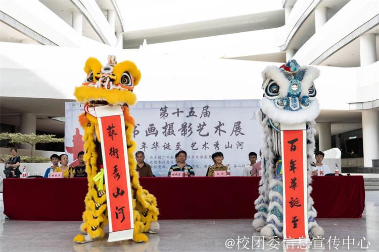 12日下午14:30分,书画摄影艺术展开幕式正式开始,开幕式邀请了马克思主义学院院长曾学龙、自动化学院院长张晓东、艺术传媒学院院长尚华、学生处副处长黄福祥、艺术团团长马志辉、党办老师张晓萍、团委老师华慧以及各学生组织代表。开幕式由校团委广播站林运生和康博雅主持。首先由广科大龙狮团带来《双狮报喜》,为活动增添了喜庆、欢乐的氛围,龙狮团各拿起一副书法,两幅书画上写着十个大字:“百年华诞至,艺术绣山河。”以青春的名义,展现青春的风采,深入弘扬中华民族传统文化,增进绘画艺术交流。接下来由瀚麟书画协会与茶道协会共同表演《墨砚茗茶》,同学们都沉浸于自己的表演中,场上弥漫着浓浓的书香气息,用心书写每一个笔画、每一个汉字,尽其所能的展示自身书法的才能。用墨香的味道装扮了校园,也进一步宣传了书法艺术。