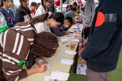参赛师生随着一声起跑枪声,正式开启了本次活动。沿途设置的彩粉发放站,为每一位奔跑者创造了一个如梦似幻的彩色世界。同时,活动现场也设置了多个摊位。选手们结束跑步后,积极参与到摊位的各项游戏中,通过小游戏获得印章,集满印章兑换心仪的礼品。活动最后,参赛选手们在留言板上印上自己的手印,留下了独属自己的印记。