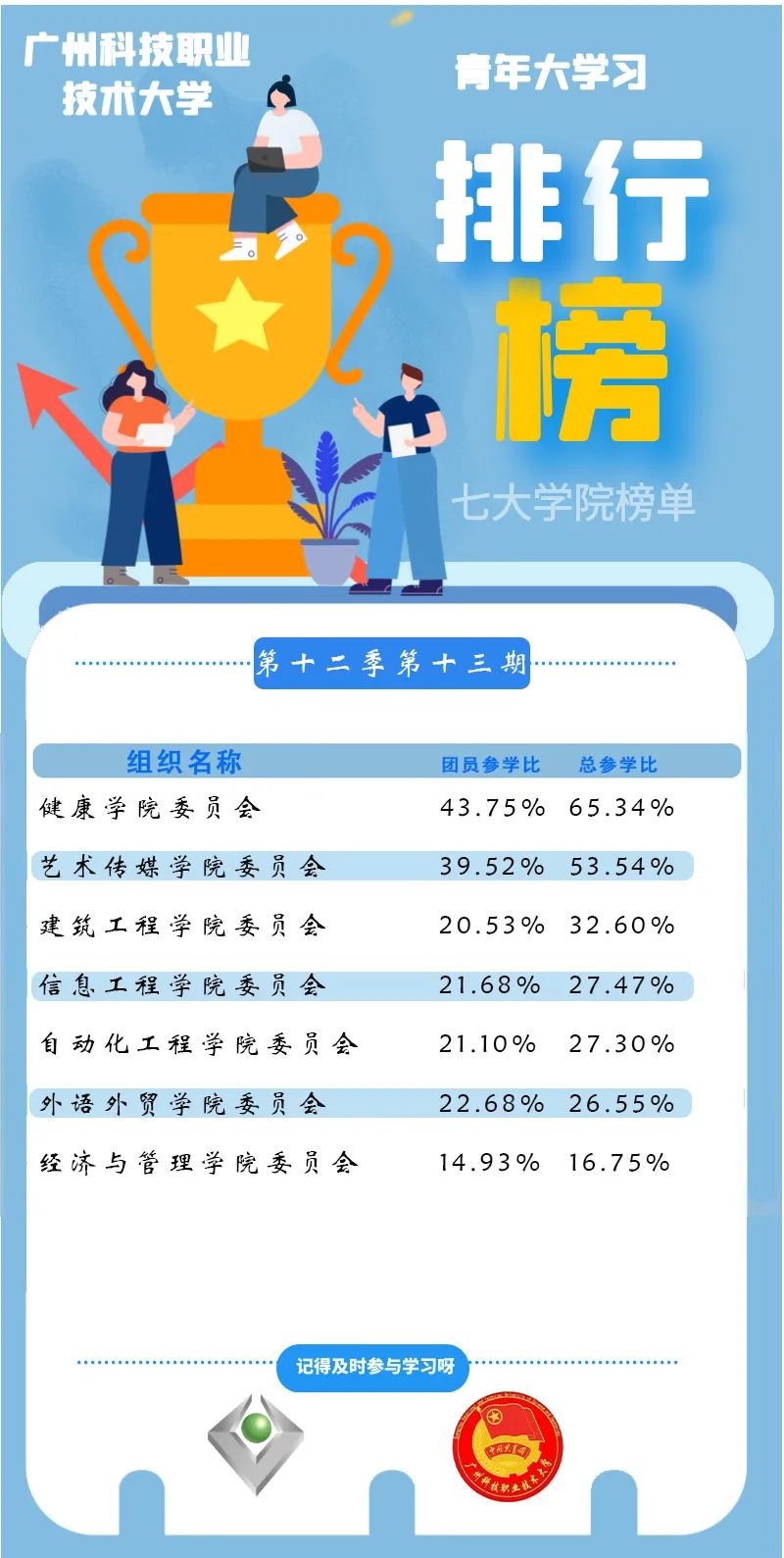 新的一期青年大学开始啦,先让我们回顾一下,上期青年大学习的各学院学习排名情况吧。