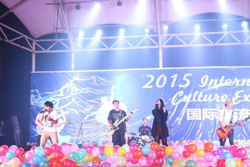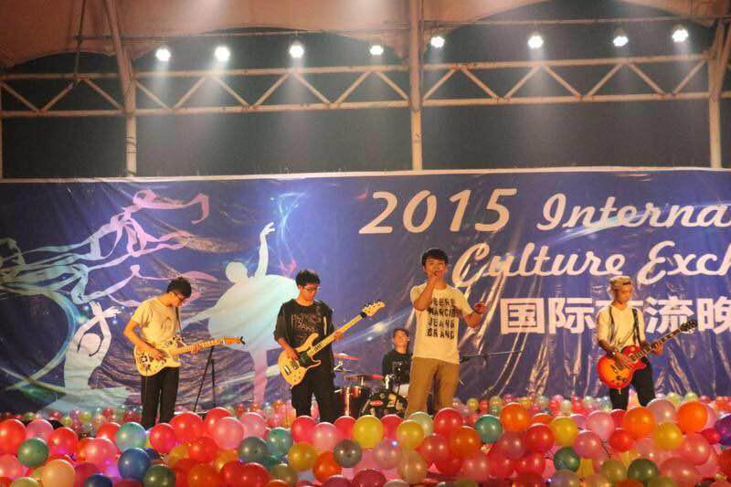从照片中的解忧堂乐队为国际交流文化节晚会拉开了序幕,如此激昂的开场,我们也为此而疯狂。