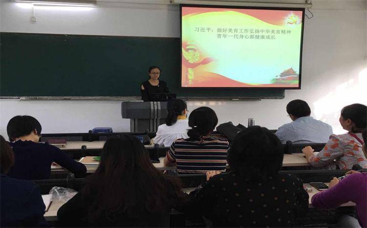 为了进一步认真贯彻夯实我院党总支教工党支部的党建工作基础,扎实推动“三会一课”等党的组织生活基本制度落实落地,指导教工支部做好本学期党建工作的梳理和总结,加强习近平总书记系列讲话学习,我院教工党支部于10月22日下午午在教学楼1206课室召开支部党员大会,并认真学习习近平总书记关于做好美育工作弘扬中华美育精神让祖国青年一代身心都健康成长的讲话精神内涵。