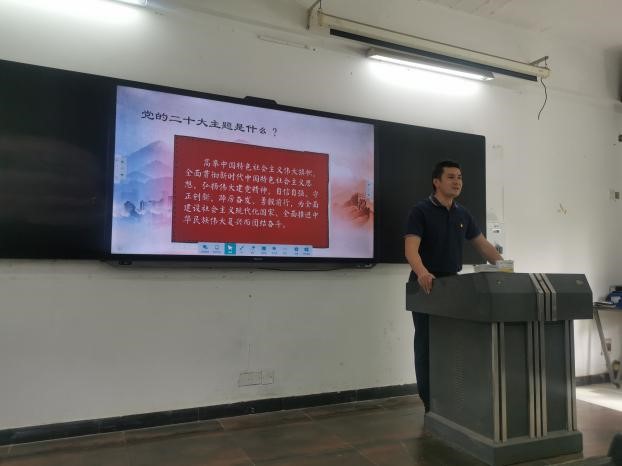 刘良书记以二十大大会主题为切入点,强调要落实党在新时代的各项要求,贯彻落实在教书育人的全过程、各方面,各位教师党员要积极学习,紧跟时代,攻坚克难,锐意进取。通过具体实例讲解了什么是“中国式现代化”,重点指出:中国共产党通过“自我革命”确保党不变质、不变色、不变味;两岸统一是必然,作为一名当代大学生党员,要坚定维护祖国统一和民族团结,坚定维护国家安全。刘良书记强调同学们要认真学习二十大报告,了解、研究报告释放出来的信号,并部署了学生党支部深入学习二十大精神的相关安排。二十大报告中关于教育、反腐、祖国统一等许多方面都值得我们深思、学习和研究。