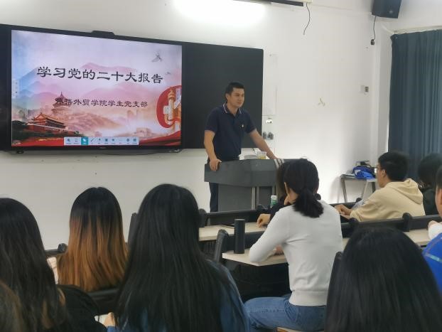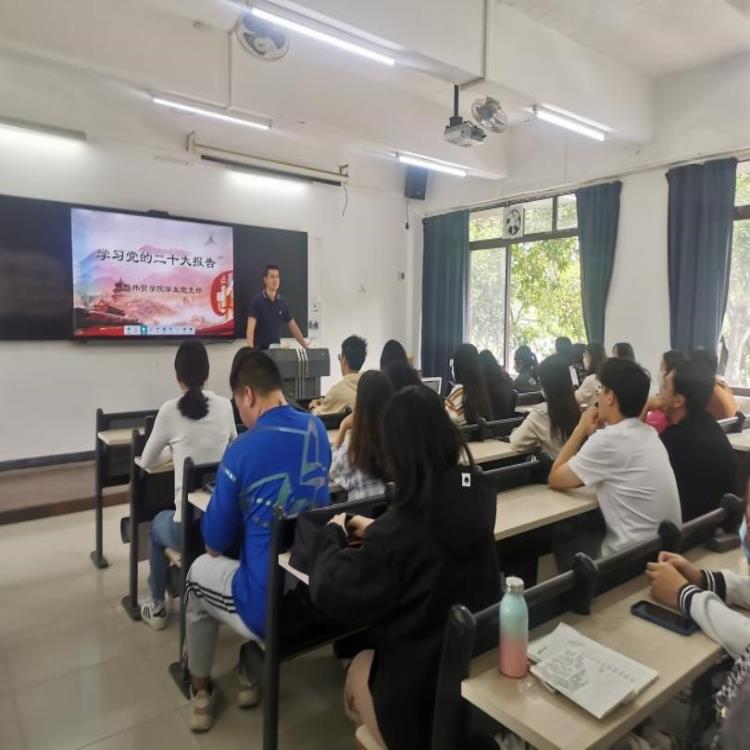 10月16日上午,中国共产党第二十次全国代表大会在北京隆重召开。外语外贸学院组织全体在校党员进行了直播观看活动。10月19日下午2:30,外语外贸学院学生党支部召开支部党员会议,由党总支刘良副书记主讲,深入学习二十大会议精神,坚定理想信念,以信仰铸魂。