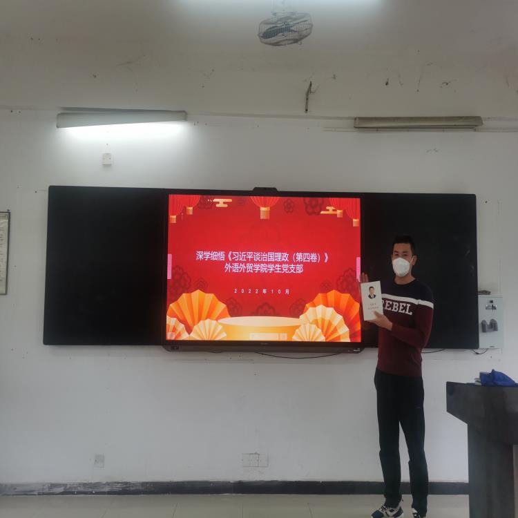 10月9日下午14:30分,外语外贸学院学生党支部在1306教室开展集体学习活动。本次活动安排在国庆假期开学后,内容为学习《习近平谈治国理政第四卷》。通过9月的学习活动,各位党员对本书各个方面有了初步的了解,本次会议着重学习习近平总书记关于“国之大者”的论述。