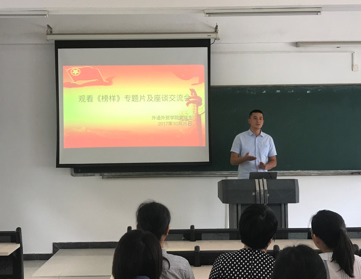 古之有树,名为“模树”,其树身挺拔,枝繁叶茂,巍然矗立,树叶随季候变动,因其颜色光泽淳正,"不染尘俗",亦为诸树之楷模。以树喻人,故称品质道德高尚、有高风峻节,能起表率效用的人为楷模榜样,以昭示人们学习,建立社会形态浩气。共产党一个全心全意为人民服务的执政党,从成立之初到至今,每个时代都踊跃出一大批可歌可泣,不忘初心的党员故事,他们的每一个誓言,每一道掌纹都编织成一个动人的故事。伟大时代呼唤伟大精神,崇高事业需要榜样引领,为此,外语外贸学院党总支在书记刘良同志的带领下,组织全院教师党员观看由中共中央组织部、中央电视台为推进“两优一先”“两学一做”常态化联合录制的特别节目《榜样》,并召开座谈交流会,以激发外语外贸学院党员老师参与学习教育、争创岗位业绩的进取热情,营造其做合格党员的活跃气氛。