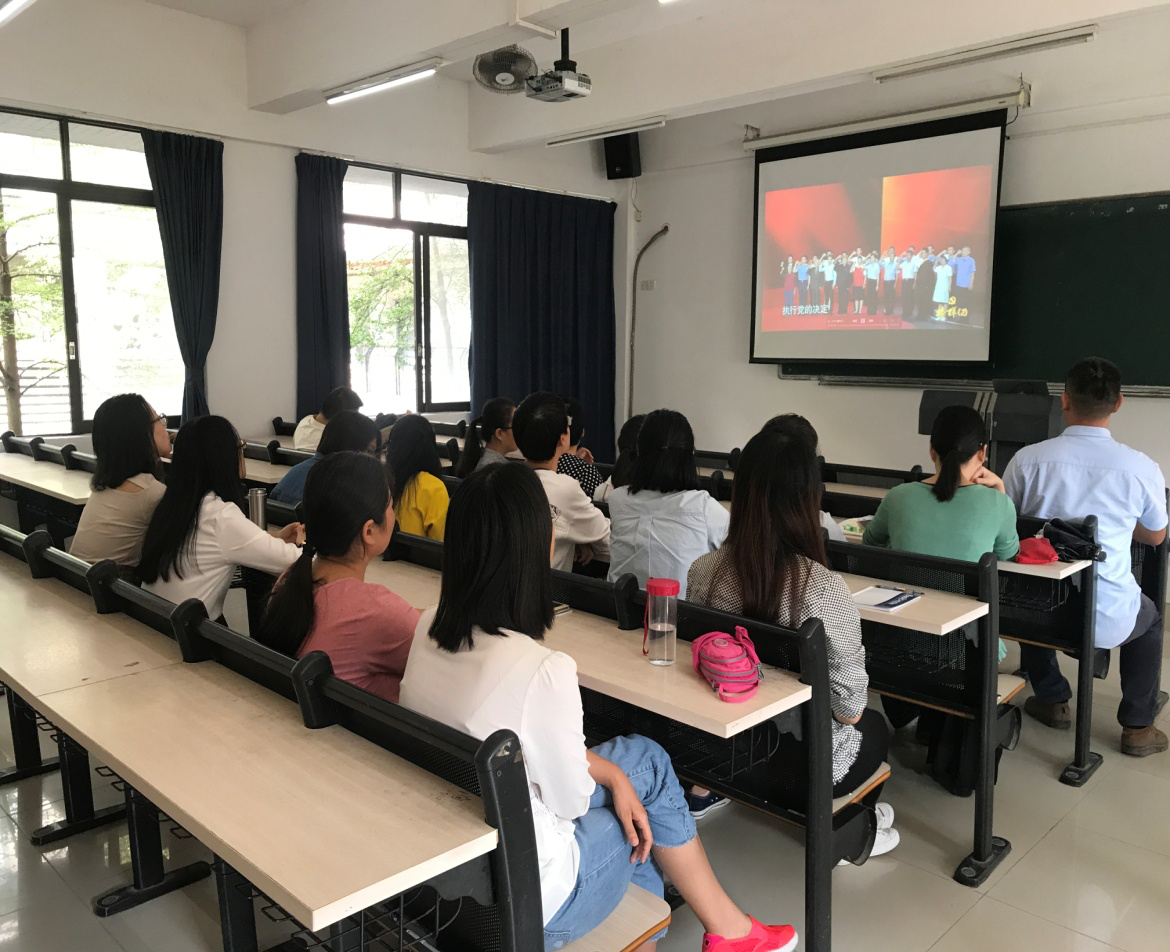 (图为外语外贸学院全体教师党员认真观看《榜样》)
