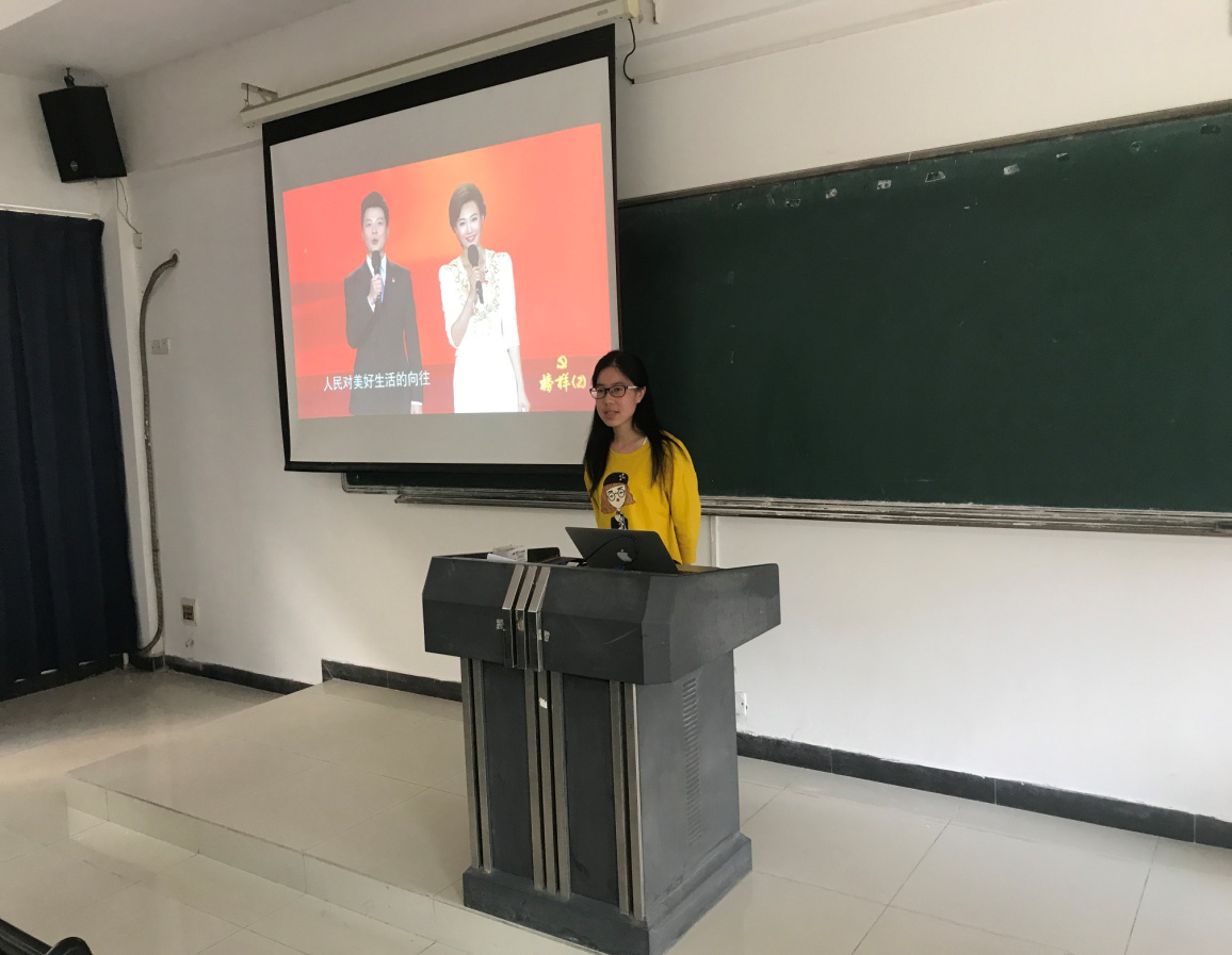 (图为外语外贸学院党员教师胡俊茹谈观看《榜样》体会)