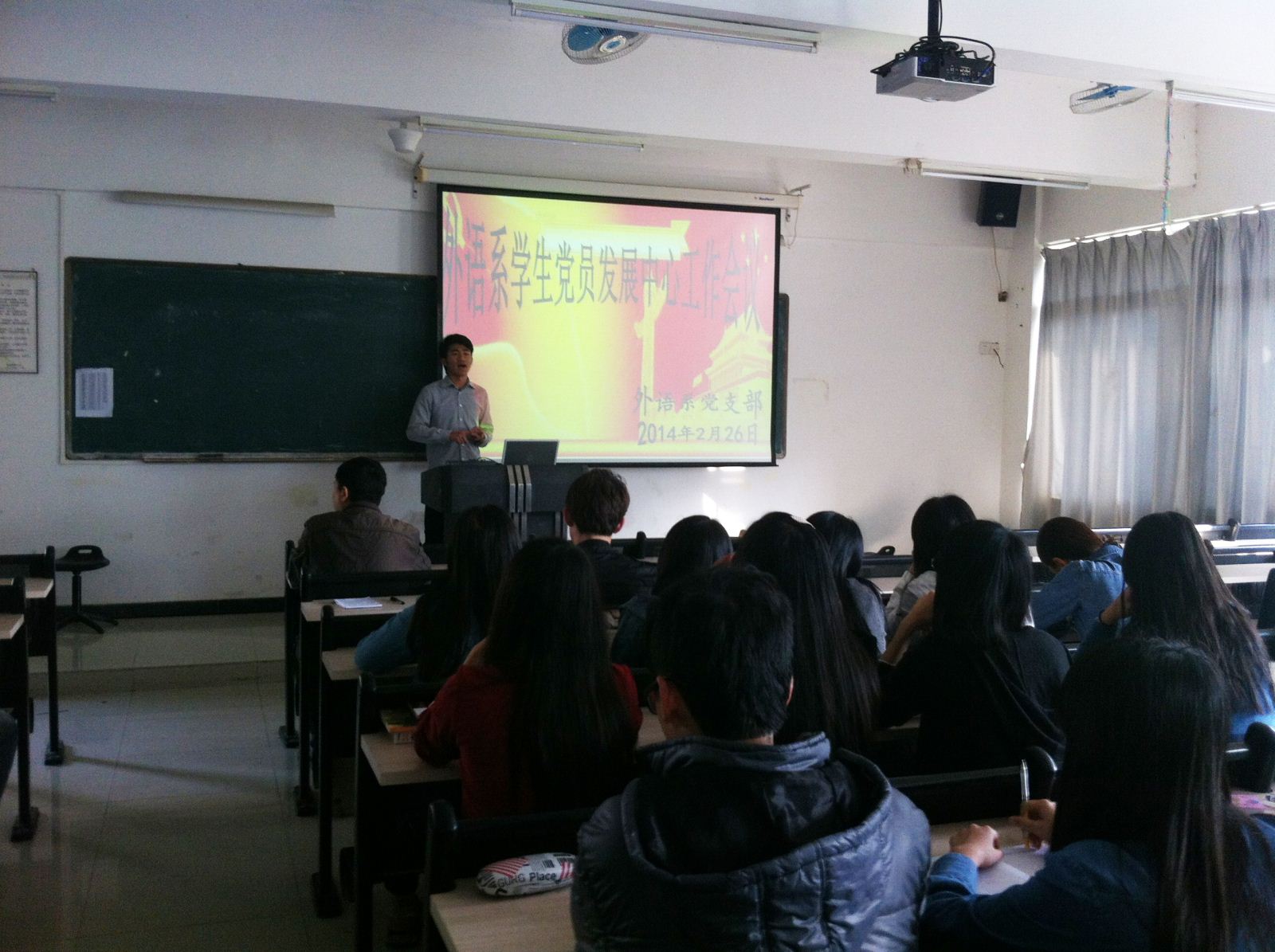 2月26日下午4:30,外语系在1203召开学生党员发展中心工作会议,系部党书记邱健以及外语系党小组全体人员参加了此次会议。