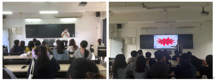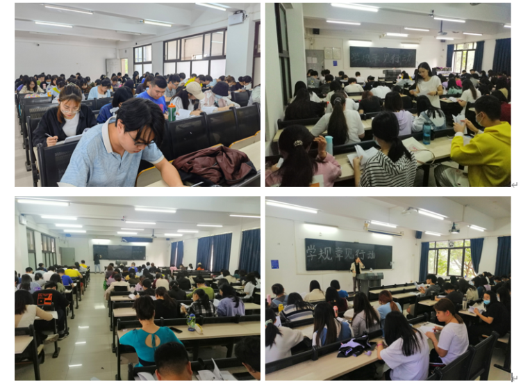 为了普及新生对《广州科技职业技术大学学生管理规定》的认识,加强在校学生对校规校纪的深入了解,维护学校正常的教育教学秩序,树立良好的学风和校风,自10月18日以来,外语外贸学院辅导员深入各个年级、各个班级开展“学规章、见行动”主题班会。所谓“无规矩不成方圆”,本次班会主旨明确,旨在树立良好的学风和校风,对大学生行为规范有更加深入的认识,并付诸行动,增强学生的自我教育、自我管理,加强同学们的规范意识和提升同学们的防范能力,降低任何可能发生的风险,排除一切可能的隐患,使同学们能够在一个安全健康的环境下认真学习。