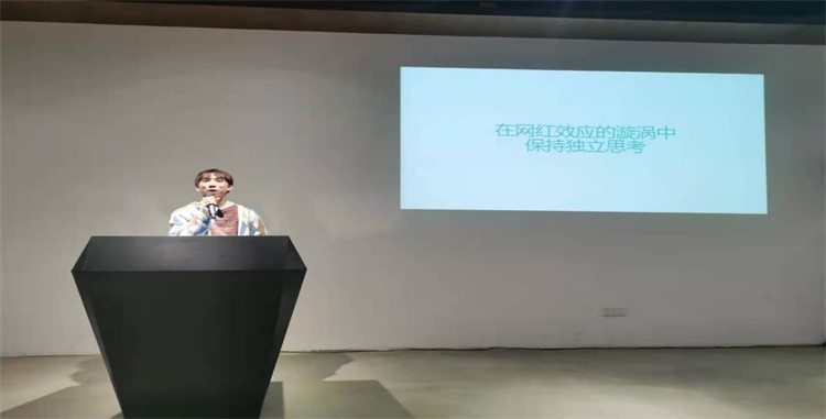 罗历同学生动有趣的演讲引起了会场学生的共鸣并引发了同学们思考。在互动环节中,与会同学提出自身在被网红效应影响时所遇到的问题,罗历同学从自身出发,与其探讨并给出了自己的理解与建议。