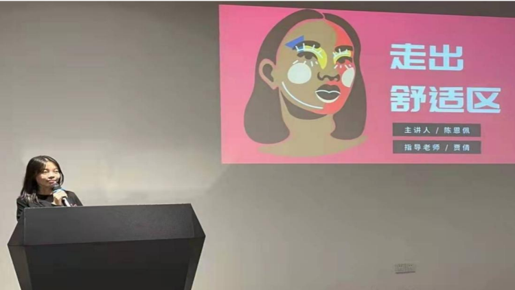在讲坛上,陈恩佩同学结合自身走出舒适区的经历与同学们进行分享和交流。首先,通过讲述自己意识到应该跳出舒适,决定参加讲坛活动来锻炼自己的心路历程,引出“走出舒适区”的概念。接着,在正式阐述“舒适区”概念前,用“走出舒适区不能使人受益反而失去自己原本拥有的一切”的反例引起大家对这一矛盾的思考。随后她总结,走出舒适区最重要在于解决三个根本性的问题: