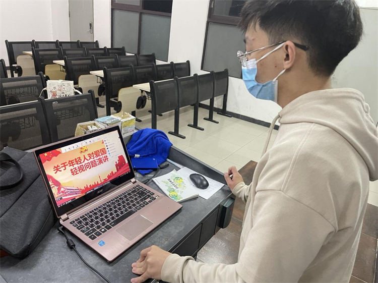 2022 年4月12日,由广州科技职业技术大学主办的,原计划在图书馆新书发布厅进行的“大学生讲坛”因疫情原因在腾讯会议中召开。本次的主讲人是来自20商英本科2班的赖青林同学,现任20商英本科2班班长;其演讲的主题是“当代大学生爱国主义教育”此次讲坛由外语外贸学院辅导员何柳青老师主持。