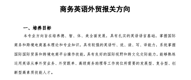 商务英语外贸报关方向