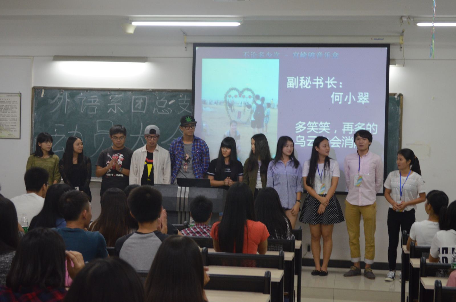 10月27日晚,外语系团总支动员大会在公共教学楼1203举行。出席此次动员大会的包括书记邱健,副书记马学佳以及团总支骨干成员和各部部员。虽然秋风瑟瑟,但丝毫吹不散部员们的热情。