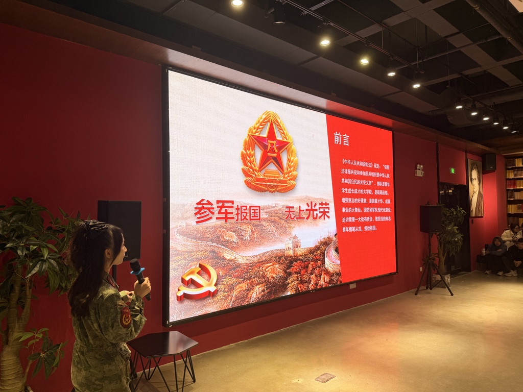 19日下午16时,白云区人民武装部工作人员在学校读书分享厅详细介绍了当前的征兵政策、形势以及部队发展前景,强调大学生入伍对于国防现代化建设的重要意义,鼓励更多优秀学子投身军营。