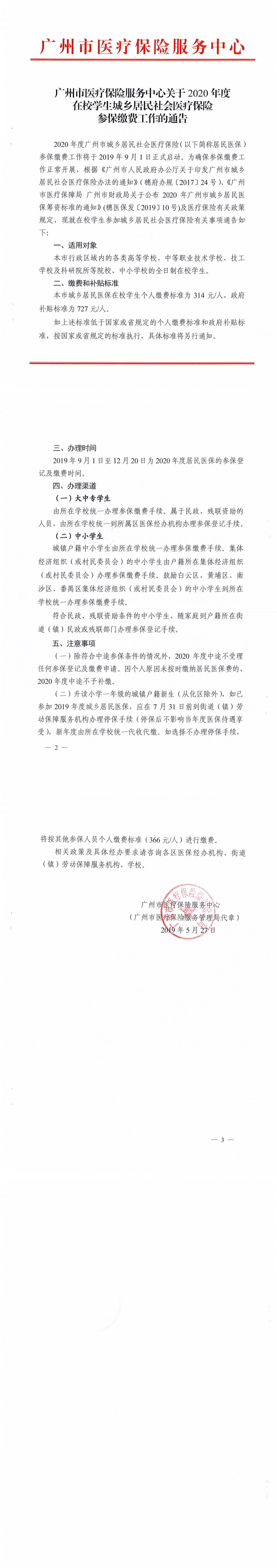 关于2020年度在校学生城乡居民社会医疗保险参保缴费工作的通知