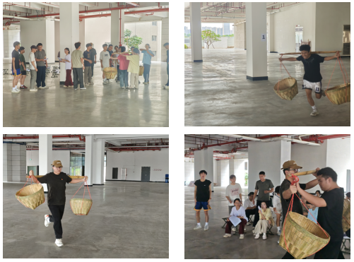 1、挑战扁担:队员用扁担挑起物资,模拟红军长征运送物资的艰辛,体验革命先辈的坚韧与团队协作。