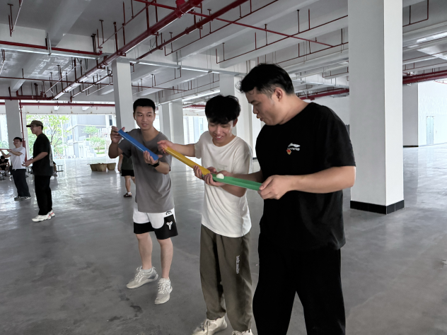 4、红途运球:队员协作将乒乓球通过导轨送入对应党史问题答案的杯子,锻炼沟通与配合能力。